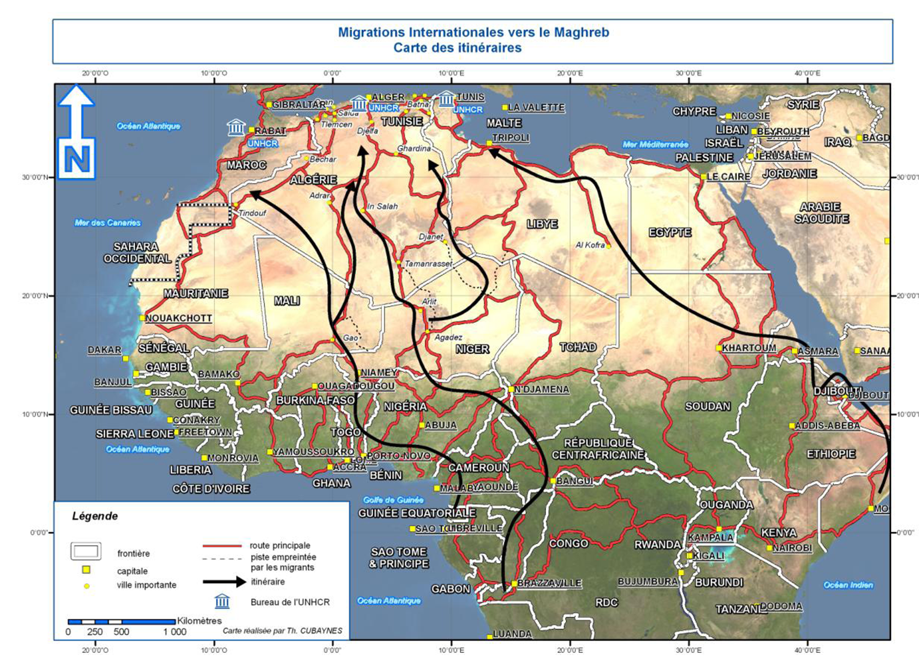 [T]he Western Mediterranean route was apparently dominated by local migrants from Morocco and Algeria but with large numbers of unknown nationalities it is assumed that local migrants are also accompanied by other long-distance migrants probably from sub-Saharan Africa. The exception was the much less used Western African route, which was exclusively affected by local migrants from Morocco.