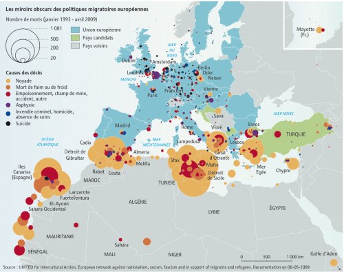 Here is a web post from DIIS (Danish Institute for International Studies) describing the project: “On 12 May 2015, researchers of VU University Amsterdam 2015-05-12_Border Deaths Org mapreleased a border death database, based on official death records of migrants who died at the Southern European borders in the years 1990-2013. They suggest that European states continue to collect such data supervised by a new European Migrant Death Observatory which is should be part of the Council of Europe.