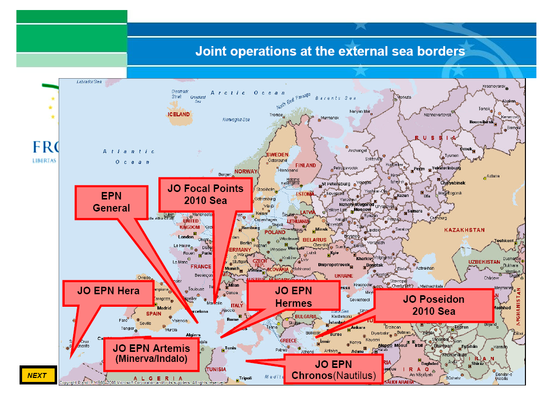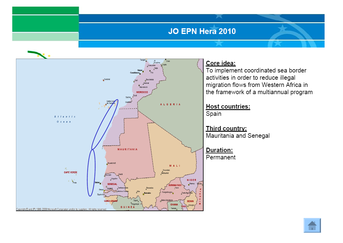 - “JO EPN Indalo 2012 started in [the Western Mediterranean] on 16 May covering five zones of the south-eastern Spanish sea border and extending into the Western Mediterranean.”