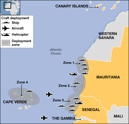 The good cooperation among the Spanish, Senegalese and Mauritanian authorities and the joint patrols in the operational sea areas and on the coastline of Senegal and Mauritania have resulted in a displacement of the