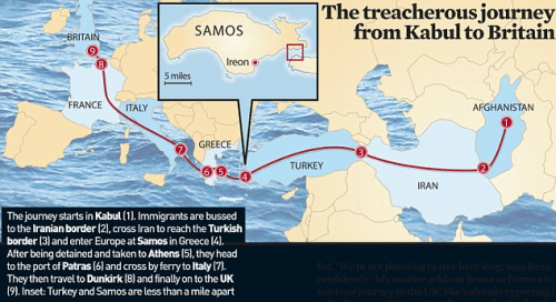 The Daily Mail has a special report detailing the experiences and routes of irregular Afghan migrants traveling from Afghanistan to the UK by way of Turkey and Greece.