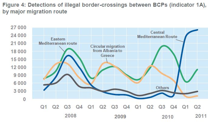 • In 2014, detections of illegal border-crossing reached a new record, with more than 280 000 detections. This was twice as many as the previous record of 140 000 detections in 2011, the year of the Arab Spring;